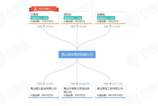 黄山茶业集团旗下有三家子公司,其中一家为持股75%的“黄山朝义食品有限公司”,该公司另外25%股权的持有人是郑绍东。