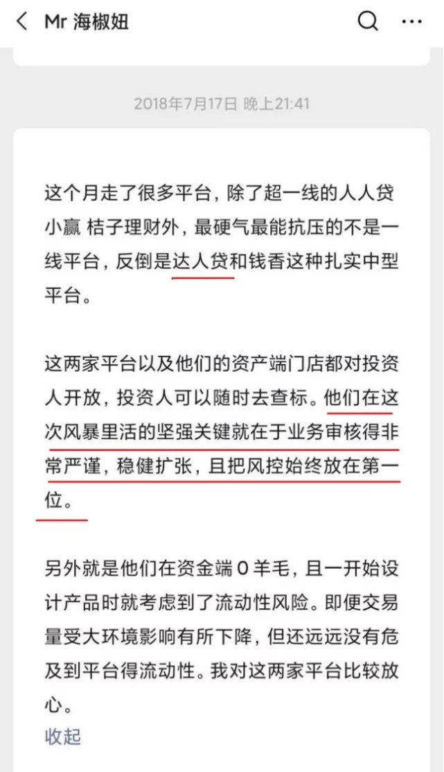 都到了什么时候了,还说达人贷之类的“业务审核严谨,稳健扩张,把风控放在第一位”。那么,我们来看看这个达人贷目前怎么样了?