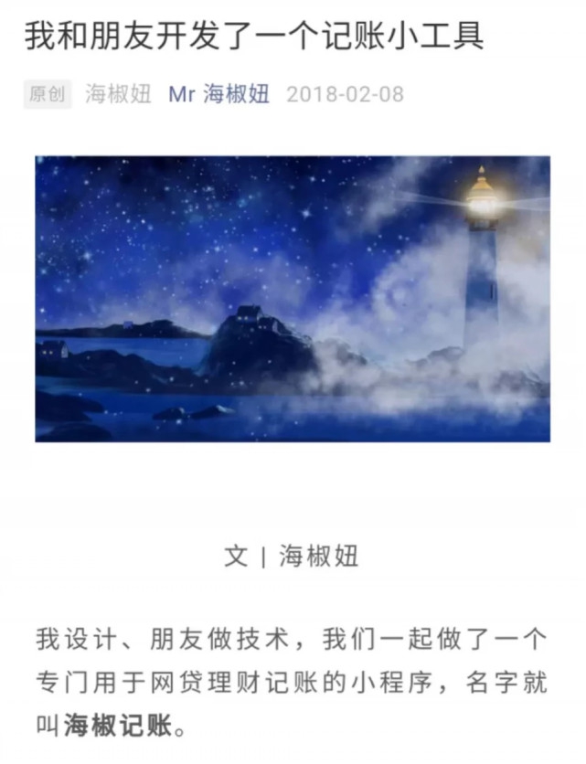 这个公众号大部分的文章内容都是在推介网贷,即使是在2018年中后期网贷行业已经收紧,风险陡然剧增的背景下,“Mr 海椒妞”依然还大言不惭在为一些平台站台,比如达人贷、贝米钱包等等。