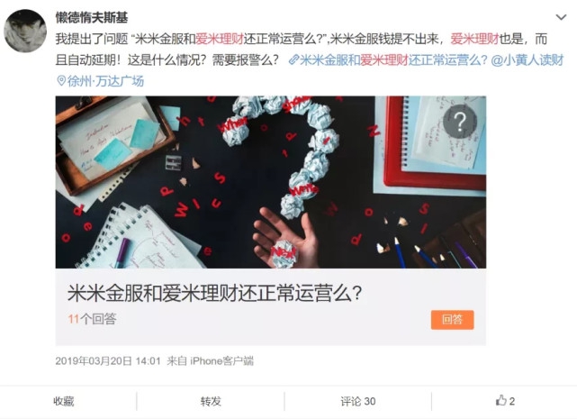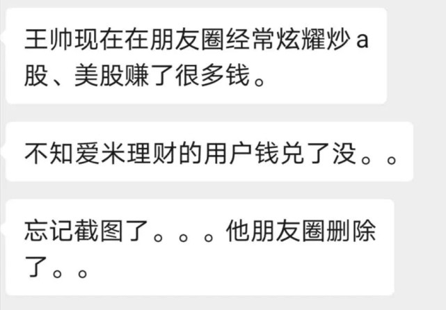 在微博搜索“爱米理财”,也能发现有相关投诉,涉及“用无效合同欺骗出借人”,“王帅本人承认平台拿投资人的资金自融,却不经投资者同意”等内容。