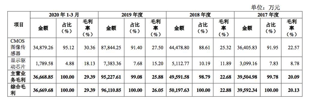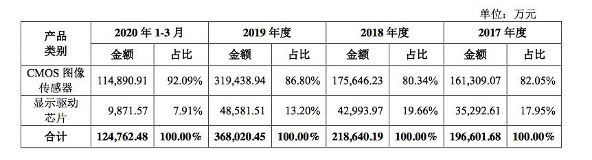 从收入结构来看,格科微绝大部分营收来自CIS传感器:2017年到2019年,CIS传感器为公司贡献了超八成营收,2020年Q1这一比例更是高达92%。公司另一收入来源为驱动芯片。