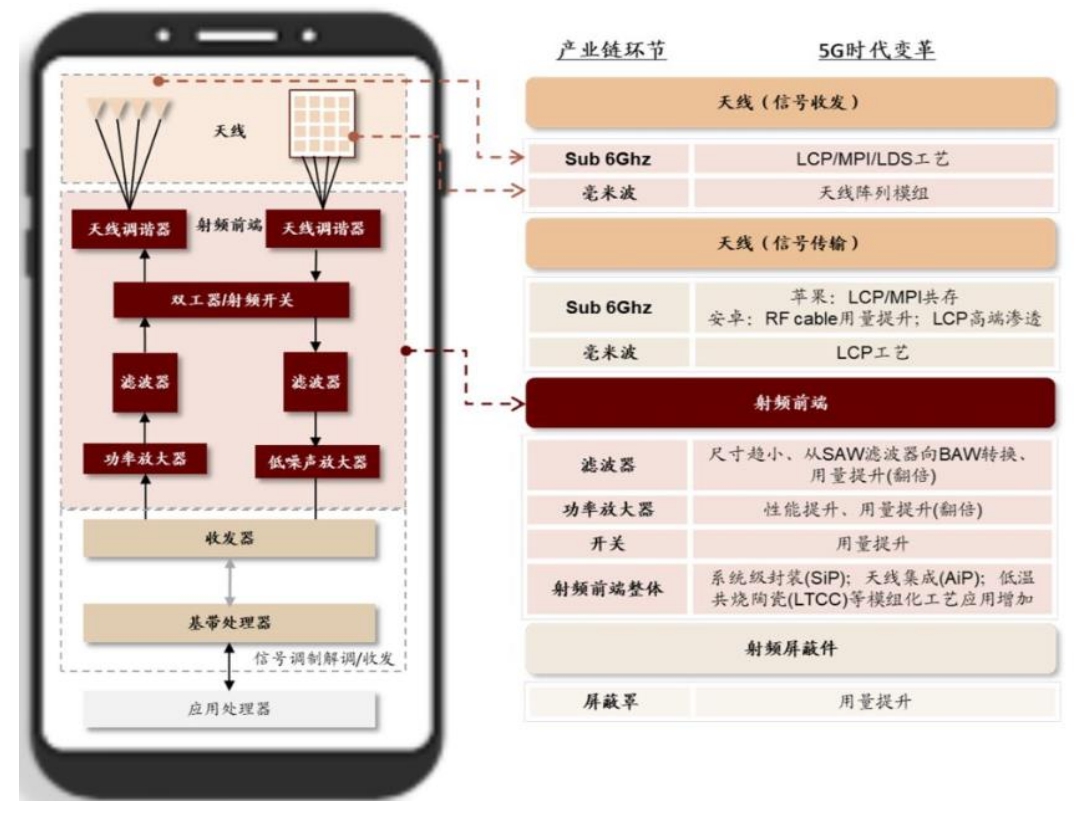 图6:5G手机相对4G手机的核心变化是射频系统的变化
