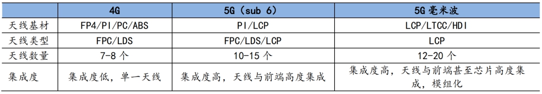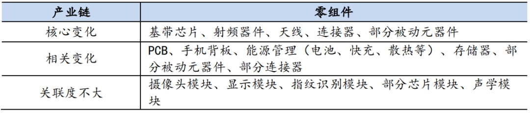 表1:5G手机零组件相对4G手机的变化