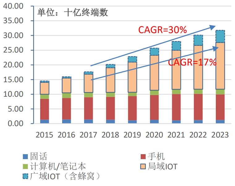图7:局域和广域IOT中,局域IoT占主导,广域IoT增速更快