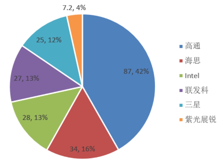2-1 Soc芯片(含基带):高通、苹果占主导,海思、紫光展锐等本土企业崛起