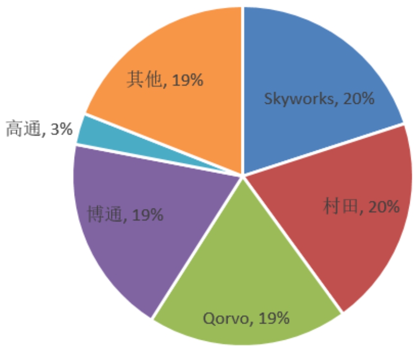 图15:2019年全球射频前端市场份额