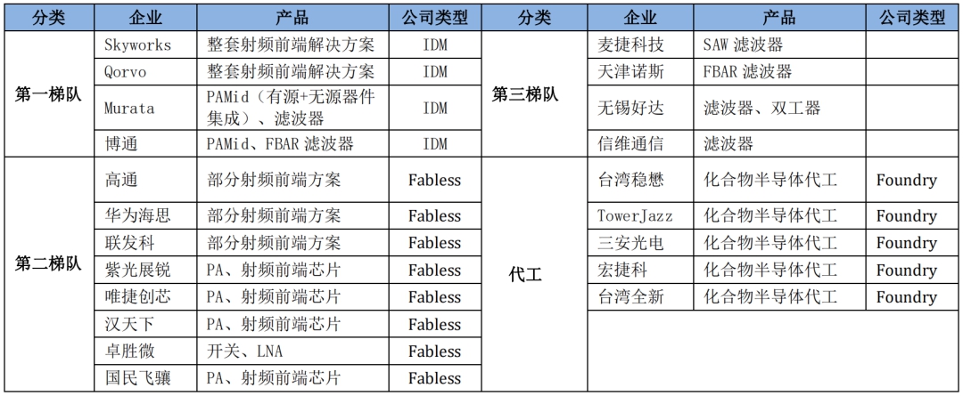 表 2:射频前端器件供应链