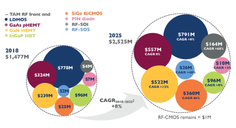 图17:2018-2025年基站射频前端市场预测