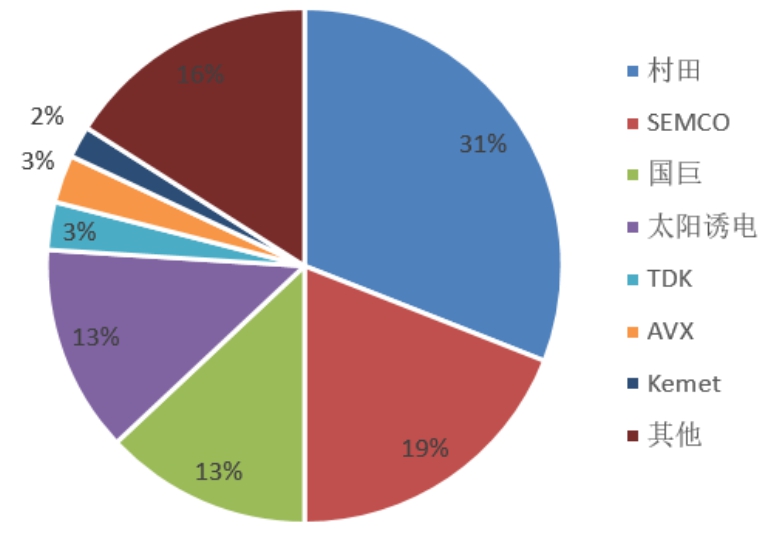 目前全球MLCC厂商主要以日韩为主,从市占份额来看,村田以31%的绝对优势占据了MLCC市场的最大份额,主要是由于村田在高端MLCC上制造工艺先进,技术壁垒高。韩国的SEMCO位居第二,占比达19%;其次是台湾地区厂商国巨和日本厂商TDK。而风华高科占比小于5%,具有很大的成长空间。
