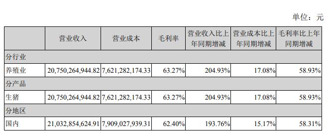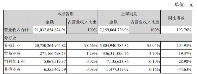 今年上半年,牧原股份210.33亿元,同比增长193.76%,扣非净利润108.1亿元,同比增长5449.36%。