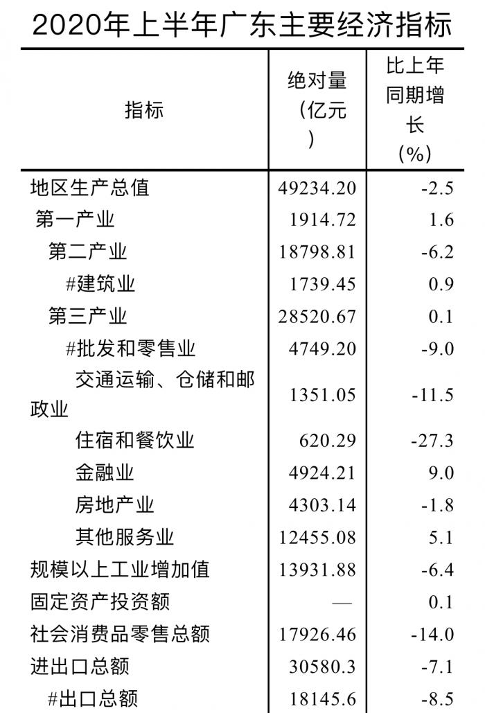 7月19日晚,2020年上半年广东经济运行情况出炉。