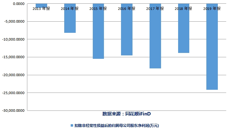 自此之后,该公司扣非后亏损规模也越来越大。数据显示,从2014年至2019年,九安医疗的扣非净利润分别为-0.82亿元、-1.55亿元、-1.46亿元、-1.82亿元、-1.39亿元和-2.42亿元。算上2013年,九安医疗的扣非净利润已经连续七年为负。