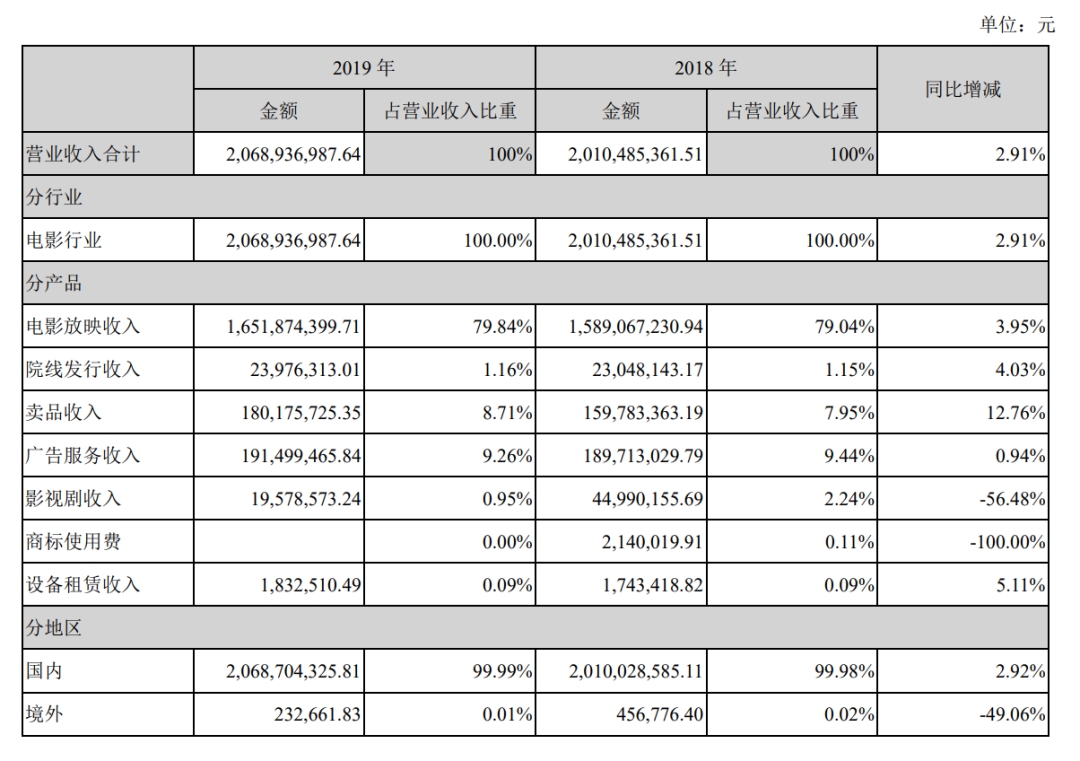 事实上,卖品收入一直以来都是电影院的重要收入来源,不只是金逸影视,万达电影在2019年获得了19.25亿元的商品、餐饮销售收入,毛利率同样高达63.33%,而横店影视在2019年在卖品业务上收入2.42亿元,毛利率同样高达77.38%。