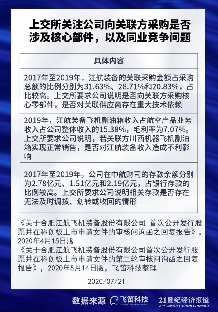 第一个问题,据公司招股书,2017年至2019年,公司的关联采购金额分别为1.02亿元、1.13亿元和5626.65万元,占采购总额的比例分别为31.63%、28.71%和20.83%,占比较高。上交所要求江航装备说明是否向关联方采购核心零部件,是否对关联供应商存在重大技术依赖。