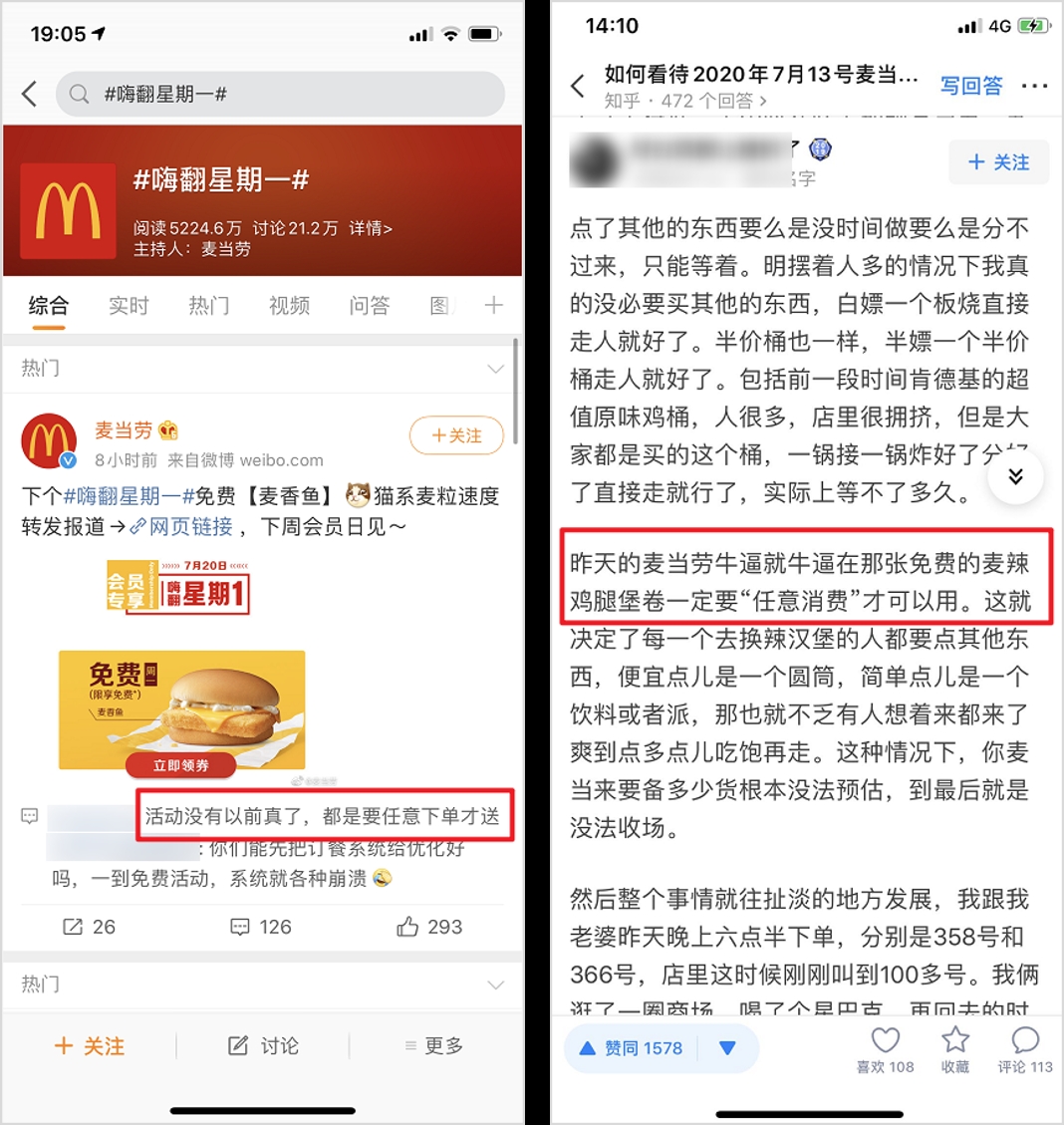由于参与活动的人数太多,本来等待时间就很长。现在又来了这种骚套路,搞得消费者怨气满满,微博、知乎上全是吐槽的:不让我白嫖可以,好歹提前告诉我啊。