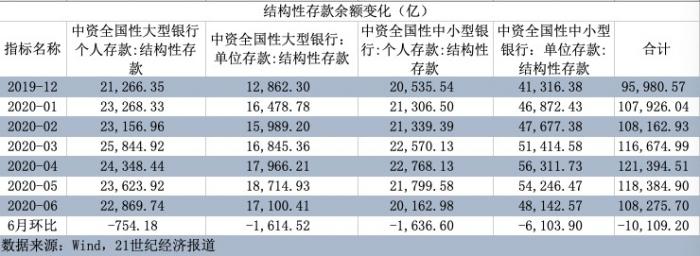 央行最新公布的数据显示,截至6月末,结构性存款余额为10.8万亿,环比上月下降了10109.2亿。