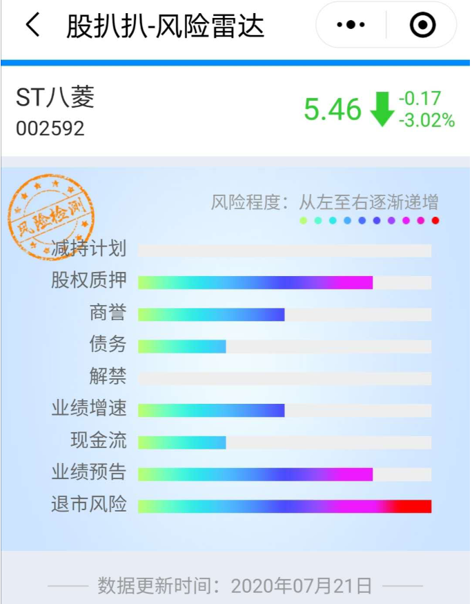 其实,对于这类个股风险,我们可以用专业的风险排除工具,股扒扒小程序来提前看一下。比如输入002592,就可以看到八菱科技相关信息。