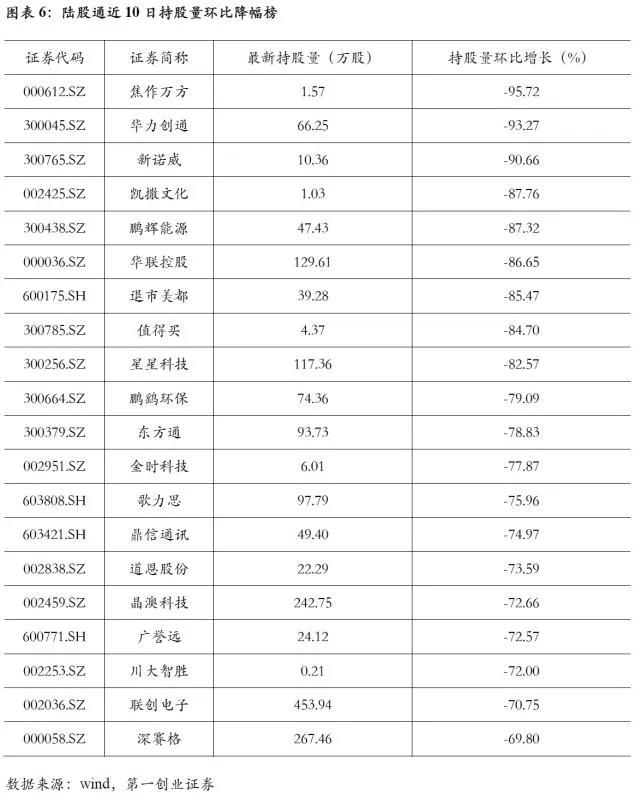 持股量环比降幅在50%以上的公司有83只,环比降幅最大的是焦作万方,陆股通最新持有1.57万股,持股量环比降幅达95.72%。其次是华力创通、新诺威、凯撒文化等。