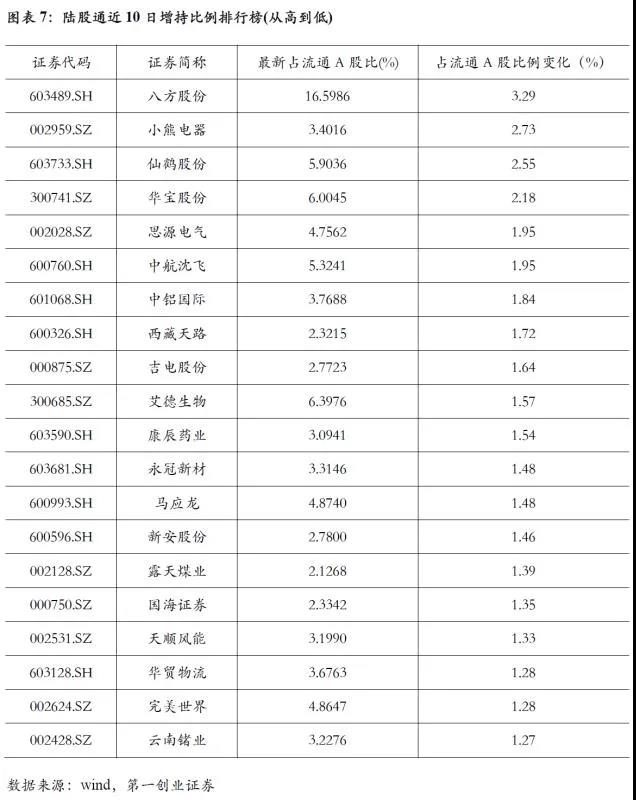 从持有流通股比例情况来看,7月10日至7月20日,北向资金对34只个股的持有流通股比例增加1%以上,其中八方股份、小熊电器、仙鹤股份、华宝股份的持有流通股比例增加超过2%。
