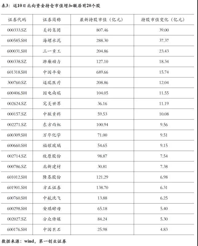 从持仓市值变动情况来看,7月10日至7月20日,北向资金对9只个股的持仓市值增加超过10亿元,其中对美的集团、海螺水泥的持仓市值增加超过30亿元。