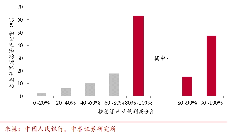 根据央行调查结果,我国2019年总资产前20%居民占有总资产的63%,而后20%居民仅占2.6%。