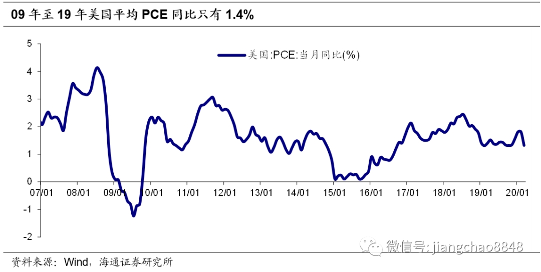 事实上,2009年至2019 年,美国的平均 PCE 同比只有 1.4%(衡量美国民间消费通胀的关键指标),甚至低于美联储2%的目标通胀率。