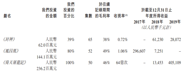 另外,除了翻拍金庸作品,公司于2017年和2018年推出的主要作品《封神》和《凤求凰》在豆瓣评分更低,不到4分。