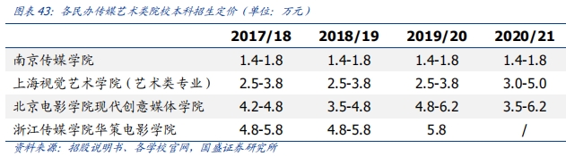 对于有名的传媒艺术类民办学校,平均学费更可以达到4万至6万元,例如上海视觉艺术学院以及北京电影学院现代创意媒体学院。