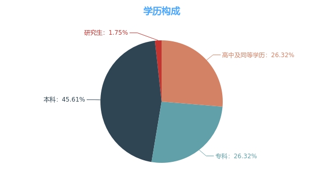 截至2019年12月31日,公司员工总人数为57人,员工架构如下: