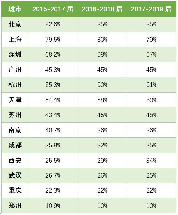 从麦可思研究院连续三年的数据来看,北京、上海和深圳都是吸引外省籍毕业生最多的城市。