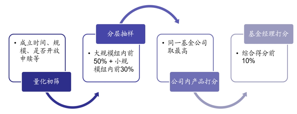 在这个由前10%的基金组成的优选基金池中,继续通过基金规模、基金产品和基金经理打分等步骤,选出不超过50只基金作为成分基金。