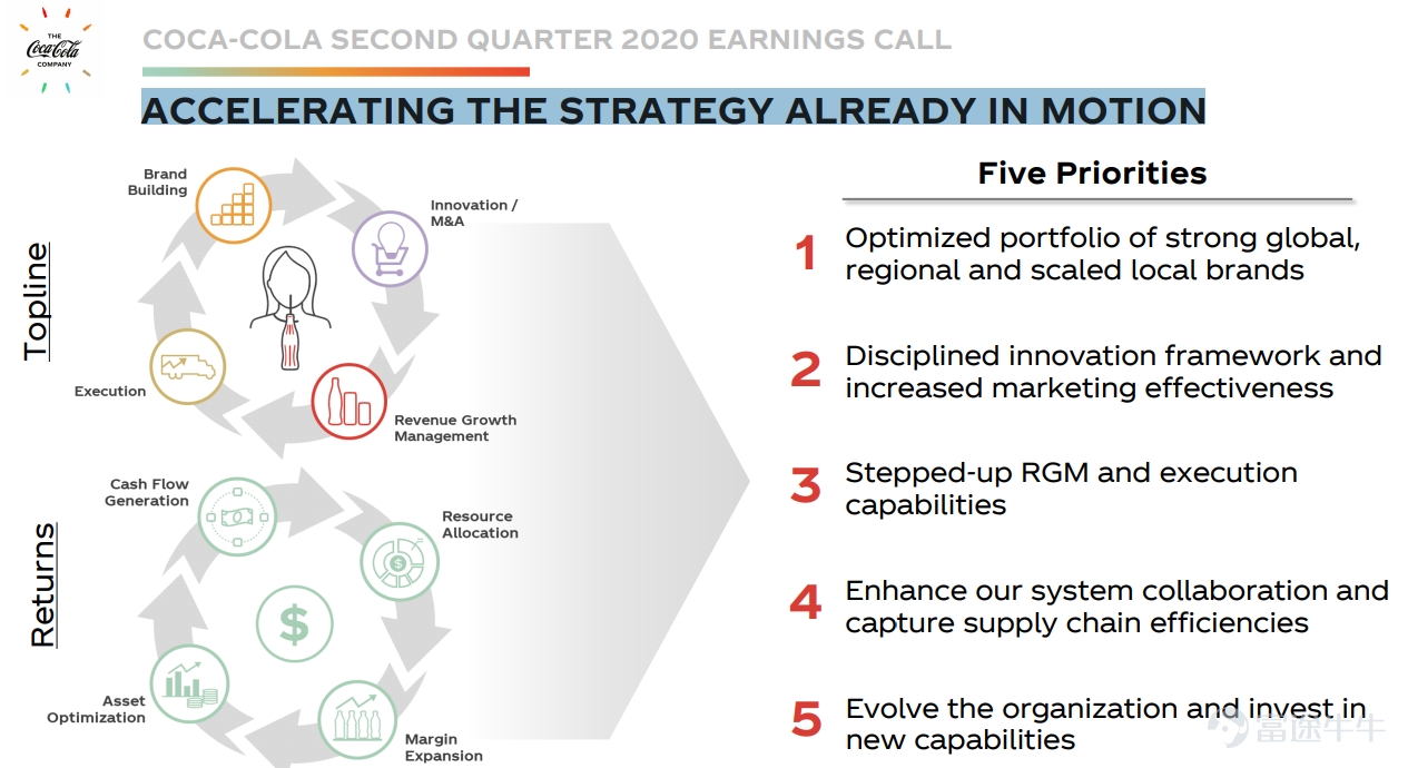第二季度财报,可口可乐发布了5项初步建议和投资策略,用于调整未来的的发展步调。
