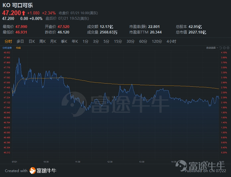 尽管财报表现低于预期,但开盘后可口可乐一度走高,最终收涨2.34%。为什么市场愿意接受一个表现不那么好的财报呢?