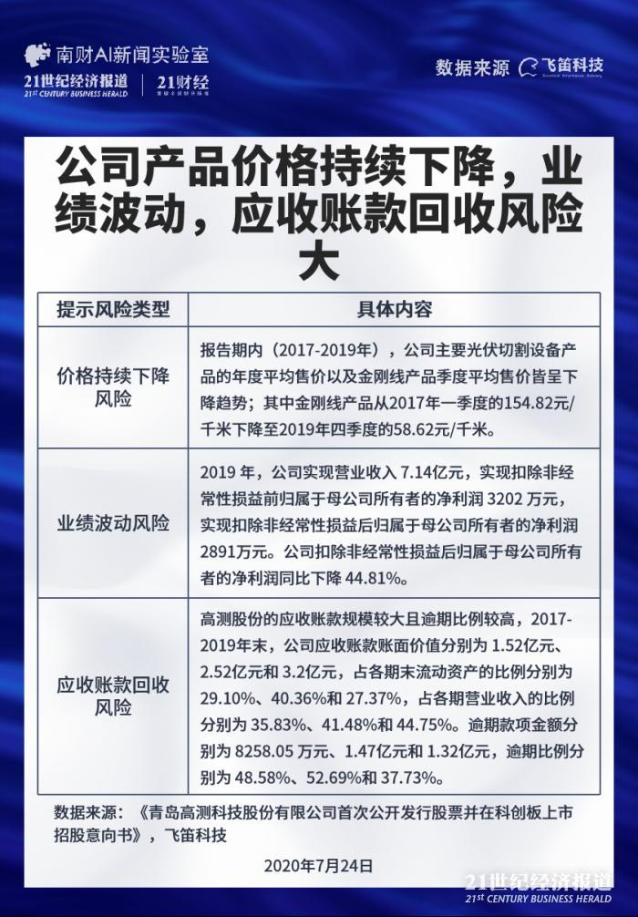 南财AI新闻实验室整理发现,排除一些常规性风险,有三大风险与公司的经营关联性高,分别是价格持续下降风险,业绩波动风险,以及应收账款回收风险,值得投资者注意。