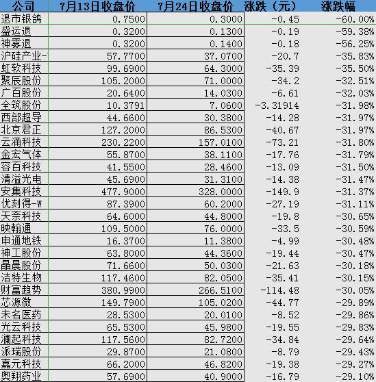 随着二级市场的再次走弱,已经有多只个股跌破了6月30日的收盘价。