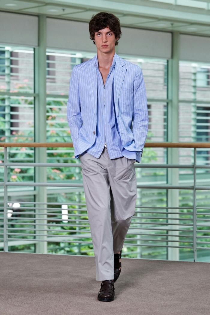 任职Hermès男装艺术总监32年的Véronique Nichanian,今年已是66岁高龄。而她这次带来的新系列也跟她本人一样,沉静而又充满智慧。本季男装系列以柔和恬静的浅蓝、淡绿、灰色为主色调,融入条纹与简单的印花,细节处再用鹿皮或小牛皮点缀,简约中透出奢华。