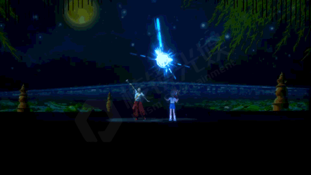 目前,全息科技能搭配声光电形成全新的演艺表现手法。观众无需佩戴任何设备即可观看3D效果演出,身临其境感受全息立体空间。同时,虚拟人、真人、人偶可以在表演中同台,虚实穿插、亦真亦幻,虚拟现实无缝切换。