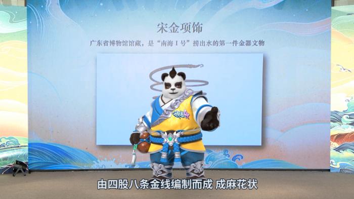 让观众感到意外惊喜的是,讲座现场还有一位“虚拟嘉宾”,多益旗下产品《神武4》的人气角色熊猫白无忧。它化身为文物讲解员,生动介绍了知名文物“军持”和“宋金项饰”的来历、特点和价值。