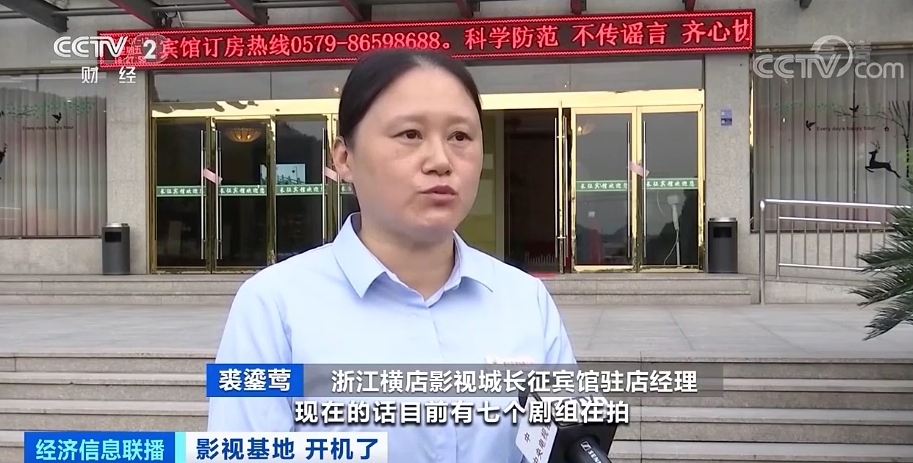 浙江横店影视城长征宾馆驻店经理 裘鎏莺:三月份的住宿率在60%左右,现在有7个剧组在拍、7个剧组在筹备,九月份我们有两个大型的剧组已经在预订了。
