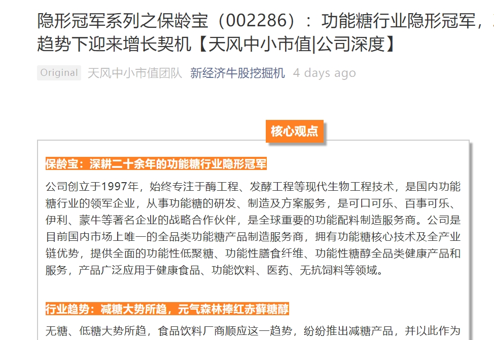 赤藓糖醇又捧红了A股小伙伴——保龄宝等生产商。