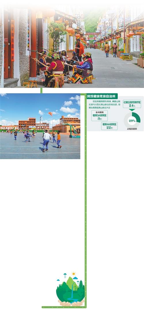 据阿坝州相关负责人介绍,绿色是阿坝发展的本色,旅游是阿坝经济发展的命脉,也是群众脱贫致富的重要支撑。阿坝各地结合自然资源和文化特色,实行文旅融合发展,创建了一批以世界遗产、生态观光、红色文化、民宿体验等为主题的A级旅游景区和生态旅游示范区,在这里,不仅有闻名于世的九寨沟等5A级景区,而且实现了A级旅游景区全域覆盖。