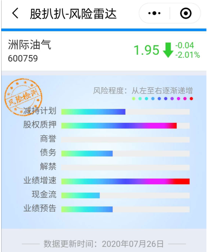 其实,对于这类个股风险,我们可以用专业的风险排除工具,股扒扒小程序来提前看一下。比如输入002770,就可以看到洲际油气相关信息。