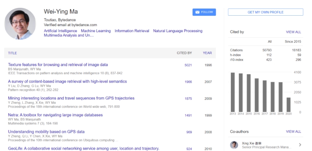 博士毕业至今,马维英一直活跃于业界的研究部门,先是在惠普实验室工作了四年,然后加入了有中国互联网“黄埔军校”之称的微软亚洲研究院,而且一待就是 16 年。2017 年,时任微软亚洲研究院常务副院长的马维英加入了字节跳动。
