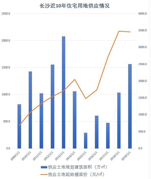 Wind数据也显示,2019年,长沙出让住宅用地66块,所供应的规划建筑面积达到1567万平米,已接近恢复到2013年的高位。