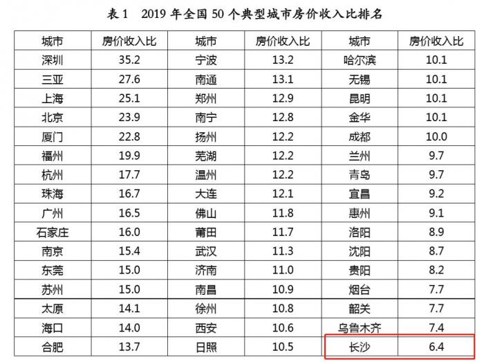 持续的政策, 也取得了良好的成效。今年一季度,易居研究院曾发布报告称,2019年,在其测算的50个城市中,长沙的房价收入比仅6.4,最高的深圳达到了35.2。