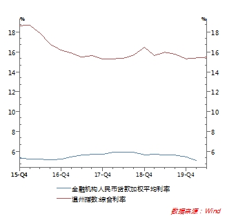 从正规金融机构借贷,虽然不排除个别企业利率处于高位的现实,但整体讲,目前银行贷款利率总体处于低位。数据显示,2020年一季度末,金融机构人民币贷款加权平均利率为5.08%,体现民间借贷利率的温州指数综合利率为15.38%,高于正规金融利率10个百分点。