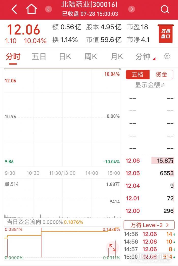 既是司太立的“大客户”也是竞争对手的北陆药业涨停,后者子公司也在建碘海醇原料药产线;截至当日收盘,报收12.06元/股。