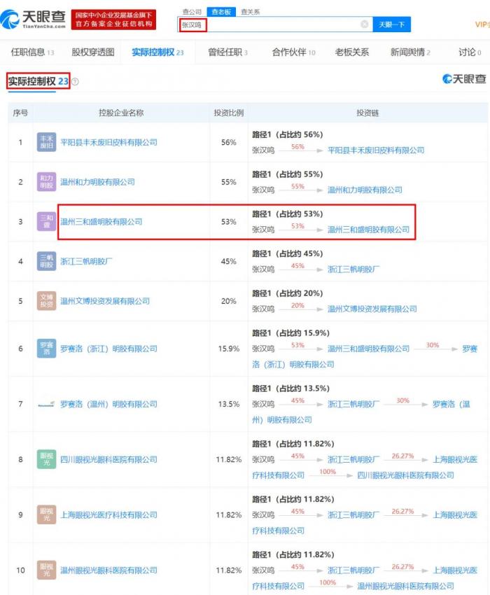 张汉鸣共拥有23家公司的实际控制权,其中值得一提的是这家温州三和盛明胶有限公司。