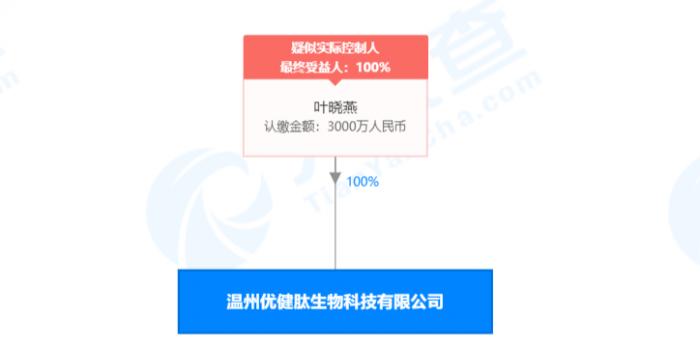 而这个叶晓燕正是生产“肽产品”的温州优健肽生物科技有限公司的实际控制人和最终受益人。