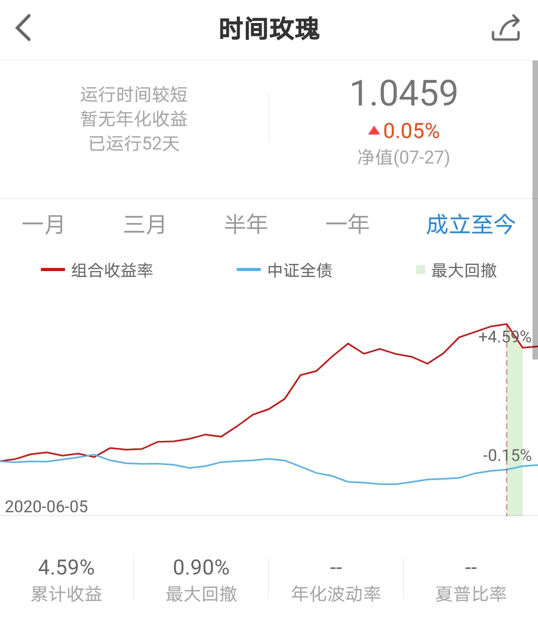 跟高波动高风险的价值成长相反,“时间玫瑰”的定位是稳健型的基金组合,目标是跑赢纯债券和银行理财。